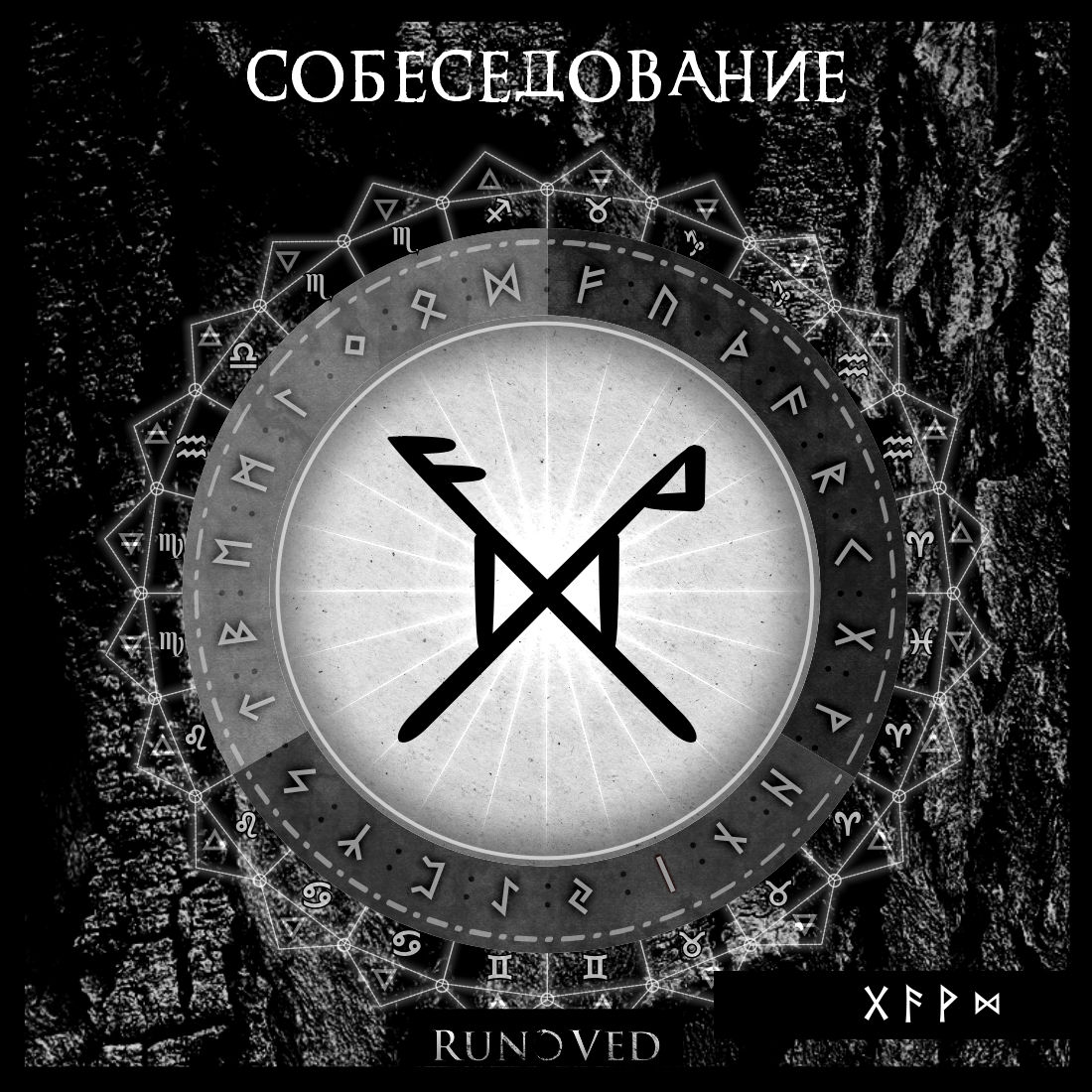 По сути, став простой, как всё гениальное. Всего 4 руны. В основе лежит Гебо, гебо — это договорённость, это сделка на равных, это удачный контракт, зачетка и т. д. И на этот движок-основу мы с одной стороны размещаем Ансуз руну — это ваше слово, знание, тест и т. д., как говорится, нужное подчеркнуть. С другой стороны, соответственно, руна принимающей стороны, и это, конечно же, Вуньо — это удовлетворение от увиденного, услышанного. Чтобы человек остался доволен вашим взаимодействием, вашим Гебо. В центре четвертая руна — это Дагаз, для удачного и быстрого решения, время иногда тоже является основопологающим фактором.
