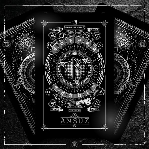 Ансуз. Четвертая руна старшего футарка. Чаще всего её трактуют как «Бог», а точнее, его воплощение или проявление, «Аз», первоисток и т. д. Но если еще точнее, то Ансуз — это проявление воли посредством волеизъявления в форме звука, слова, дела, процесс творения, Бог Ас — это, прежде всего, творец. И да, звук, стоящий за этой руной, — А, первая буква сотен алфавитов. Поговаривают, что наш мир тоже был сотворен звуком, первичной вибрацией, АУМ типа... В другой религиозной книге есть такие строки: «Вначале было слово, и слово было у Бога, и слово было Бог!»