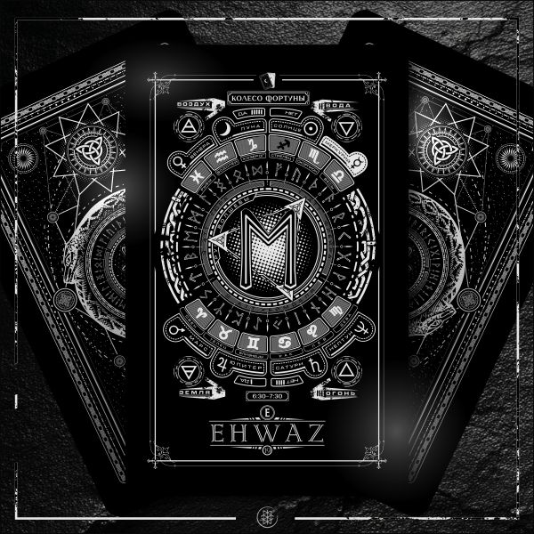 Очень интересная руна и энергия, и символ. Но по порядку пойдём. Сам символ в моей интерпретации — это 2 вертикали, 2 потока, соединённых между собой волной, либо 2 руны лагуз, повёрнутые друг к другу, что примерно такое же значение имеет, так как лагуз — это чувства, и два человека, две вертикали, чьи чувства и мысли объединяются, это и есть эйваз. Эйваз в первую очередь — это средство коммуникации, взаимодействия, общения и так далее. Но также многие связывают эту руну с конём Одина, семиногим Слейпниром, величайшим из всех коней. Что тоже весьма правильно и верно как по начертанию, так и по пониманию, и тот, кто знает о верховой езде не понаслышке, тот понимает, что в определённый момент, когда конь чувствует своего наездника, а наездник — коня, они становятся как бы одним целым, это тоже своего рода коммуникация и единение, и обединение в моменте лагузов чувств. Также хотелось бы заметить, что название руны Эваз очень схоже с названием руны Эйваз, и это тоже нельзя назвать случайным совпадением, ибо конь и дорога тесно связанны, и Слейпнир — это не обычный конь, это единственный конь, что может ходить и переносить Одина меж мирами по древу мироздания, и, как известно, древо — это Эйваз, а конь — Эваз. Йикраткая — это твердь иссы с галочкой наверху, это игра, это переход меж мирами, это что-то надмерное, выходящее за рамки. Но вернёмся к руне коня, к руне Эваз. Эваз — это единение огня и живой силы воды, опять же 2 лагуза в этой руне просматривается. Сама же коммуникация, мысль, слово, речь — это огонь, это вибрация.